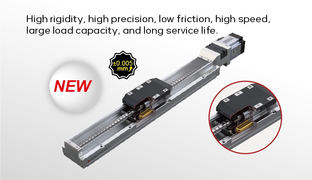 高精度、高效率、高承载能力,有效承载能力高达150kg。四柱滚珠结构,四面受力。