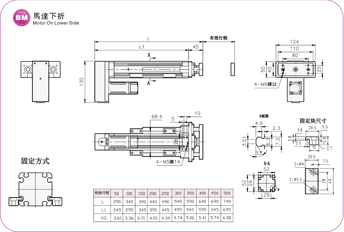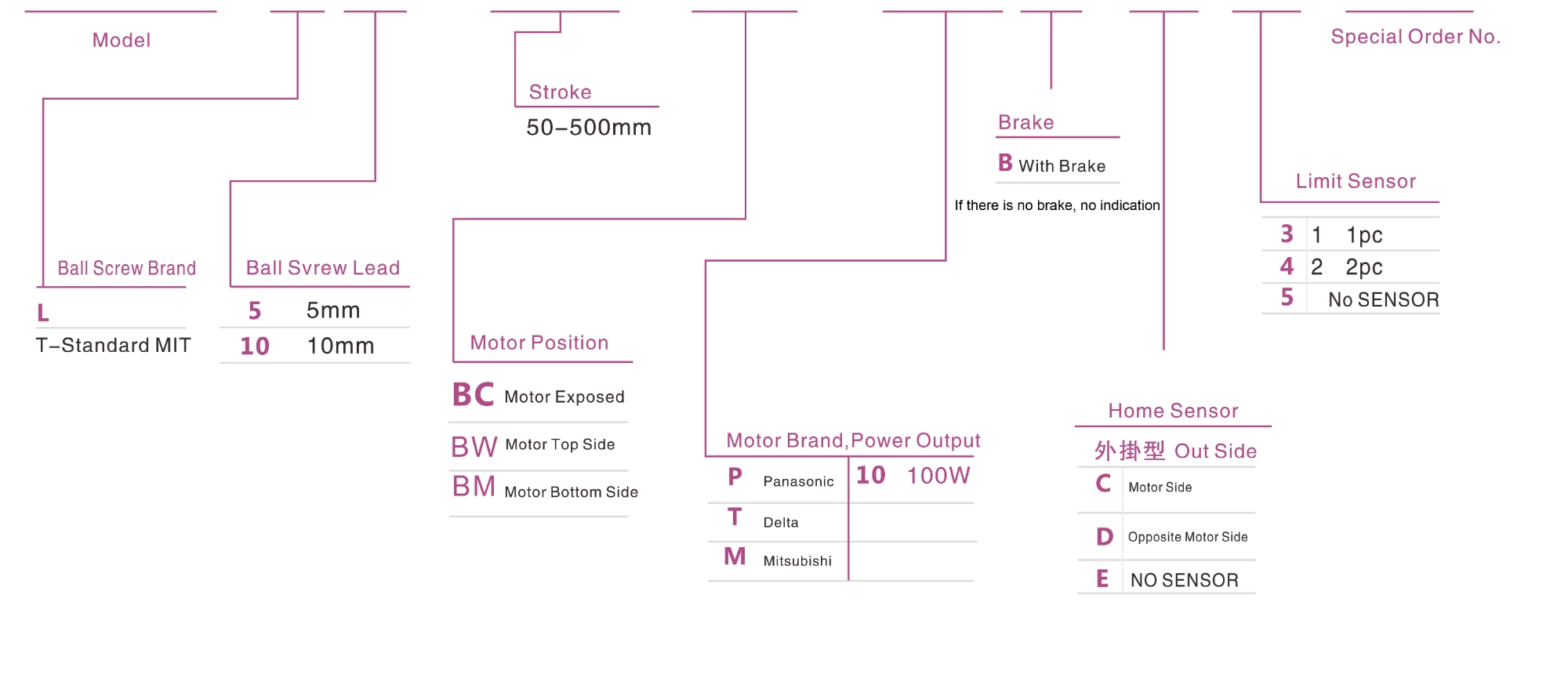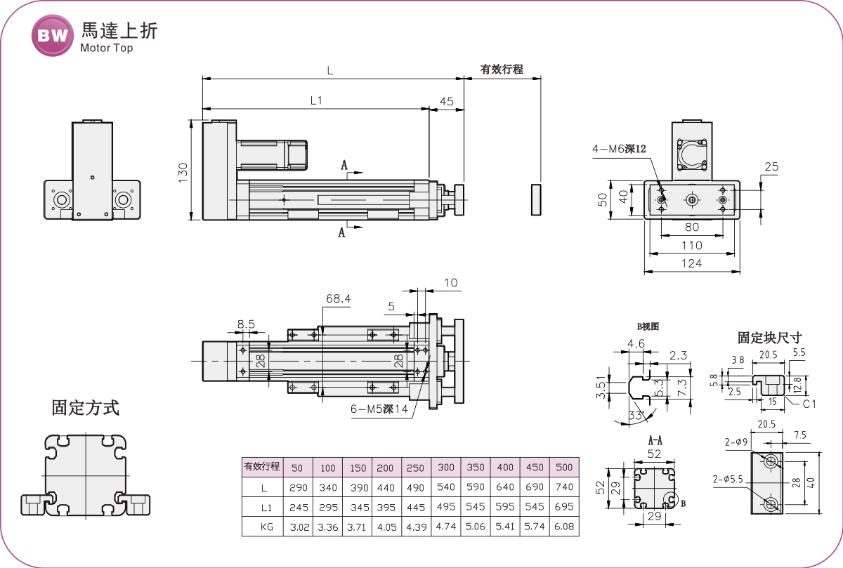 使用地点驱动模式型号规格电机输出功率(瓦)宽度(毫米)重复性(毫米)滚珠丝杠规格最大有效载荷(千克)