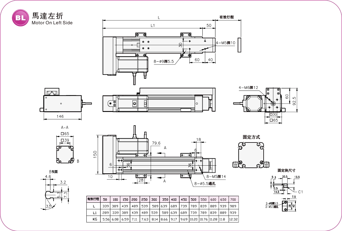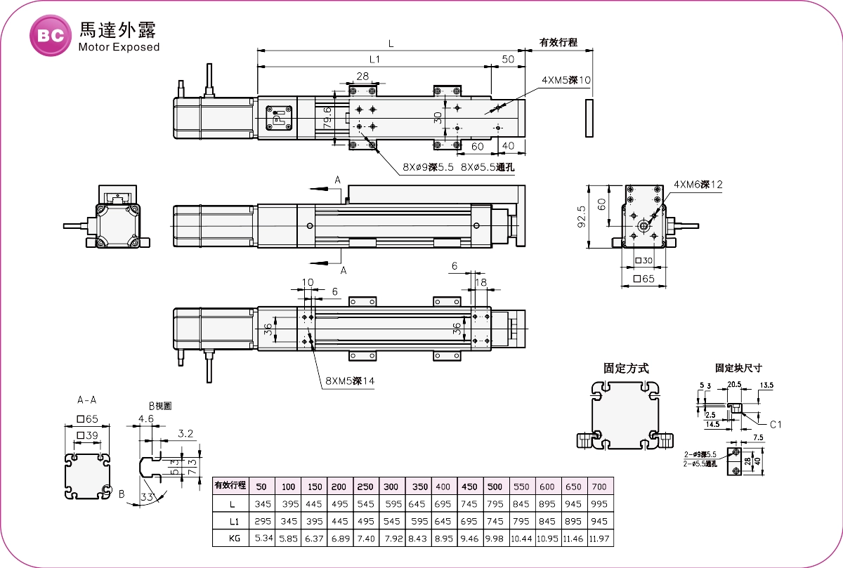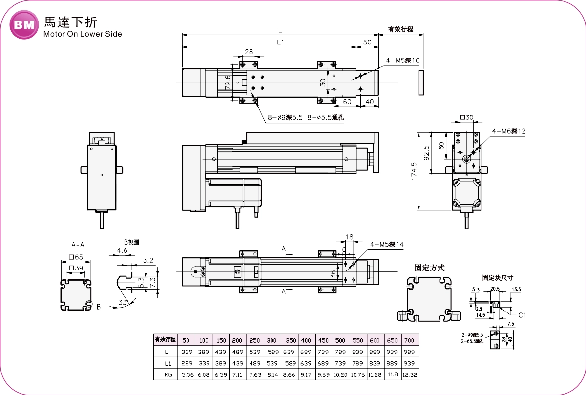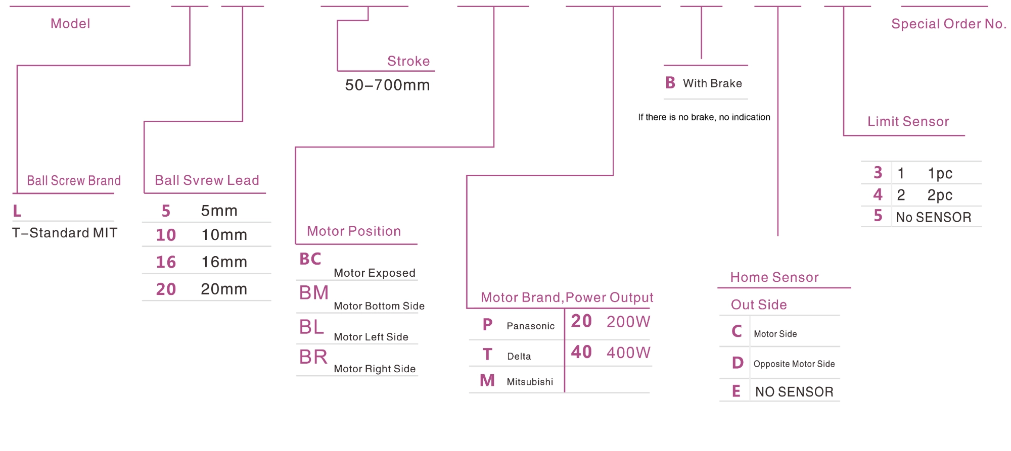 使用地点驱动模式型号规格电机输出功率(瓦)宽度(毫米)重复性(毫米)滚珠丝杠规格最大有效载荷(千克)