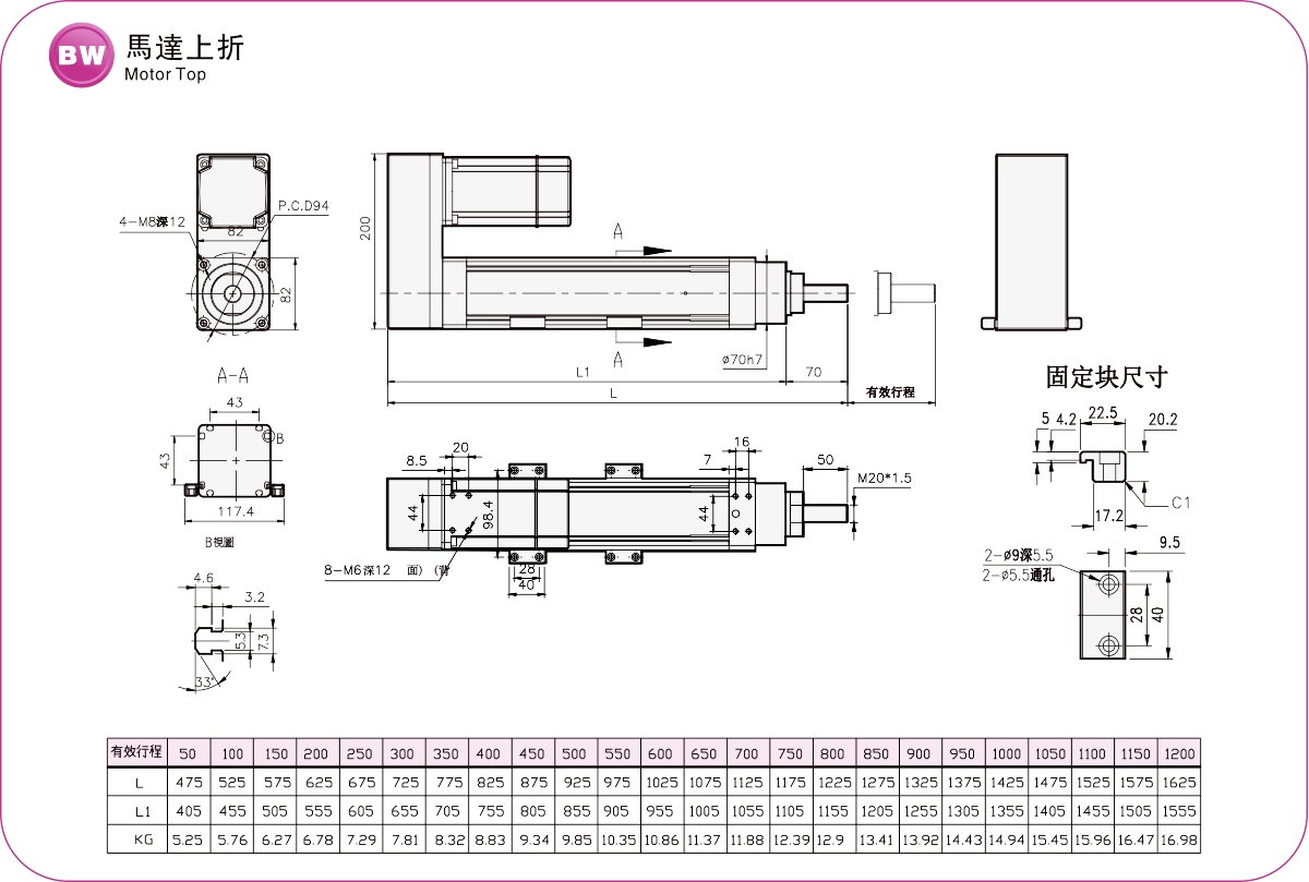 | 桨距(毫米) | 50-1200mm/50节距 | ||||
