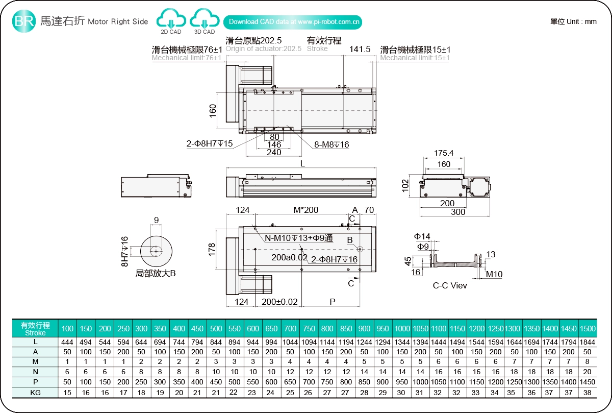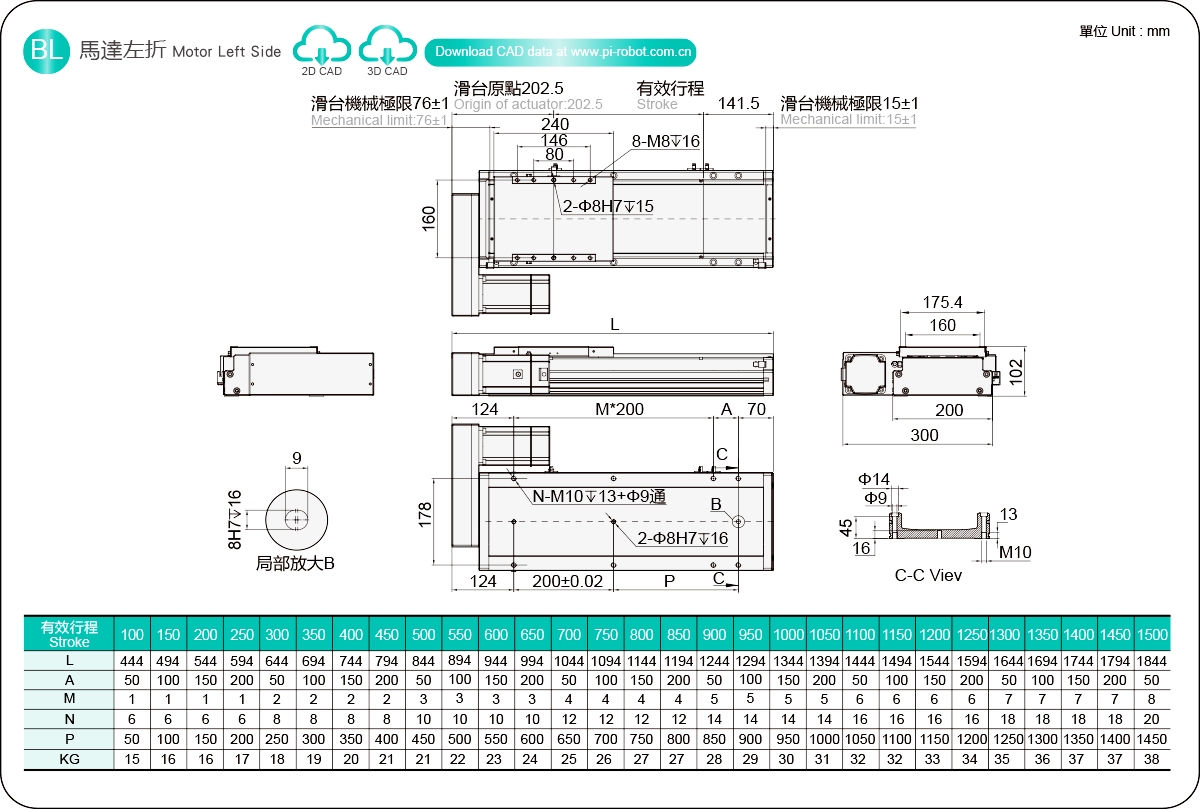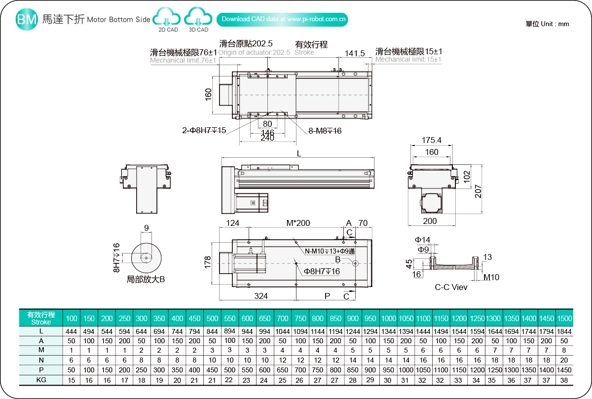 行程范围:100-1500毫米