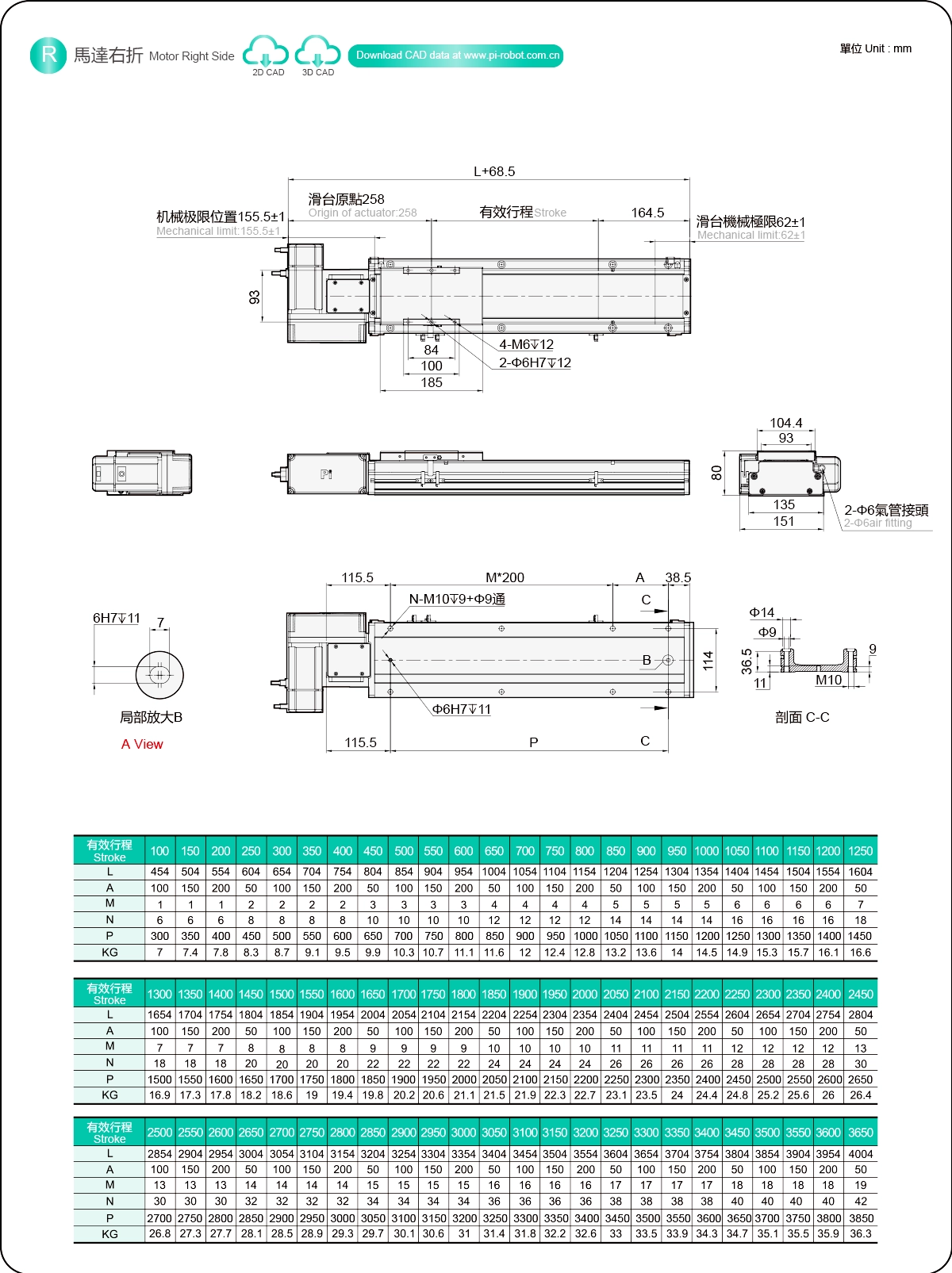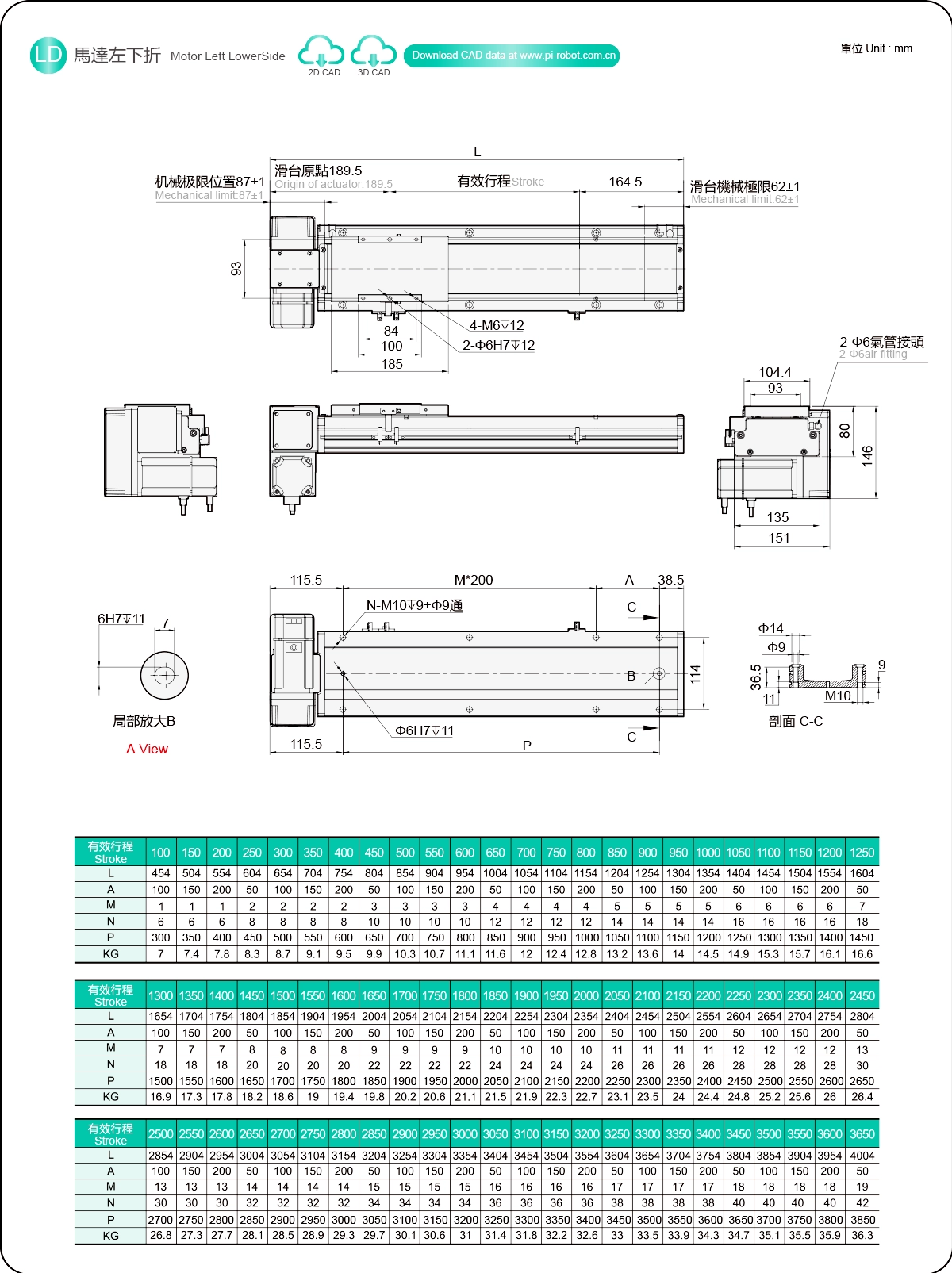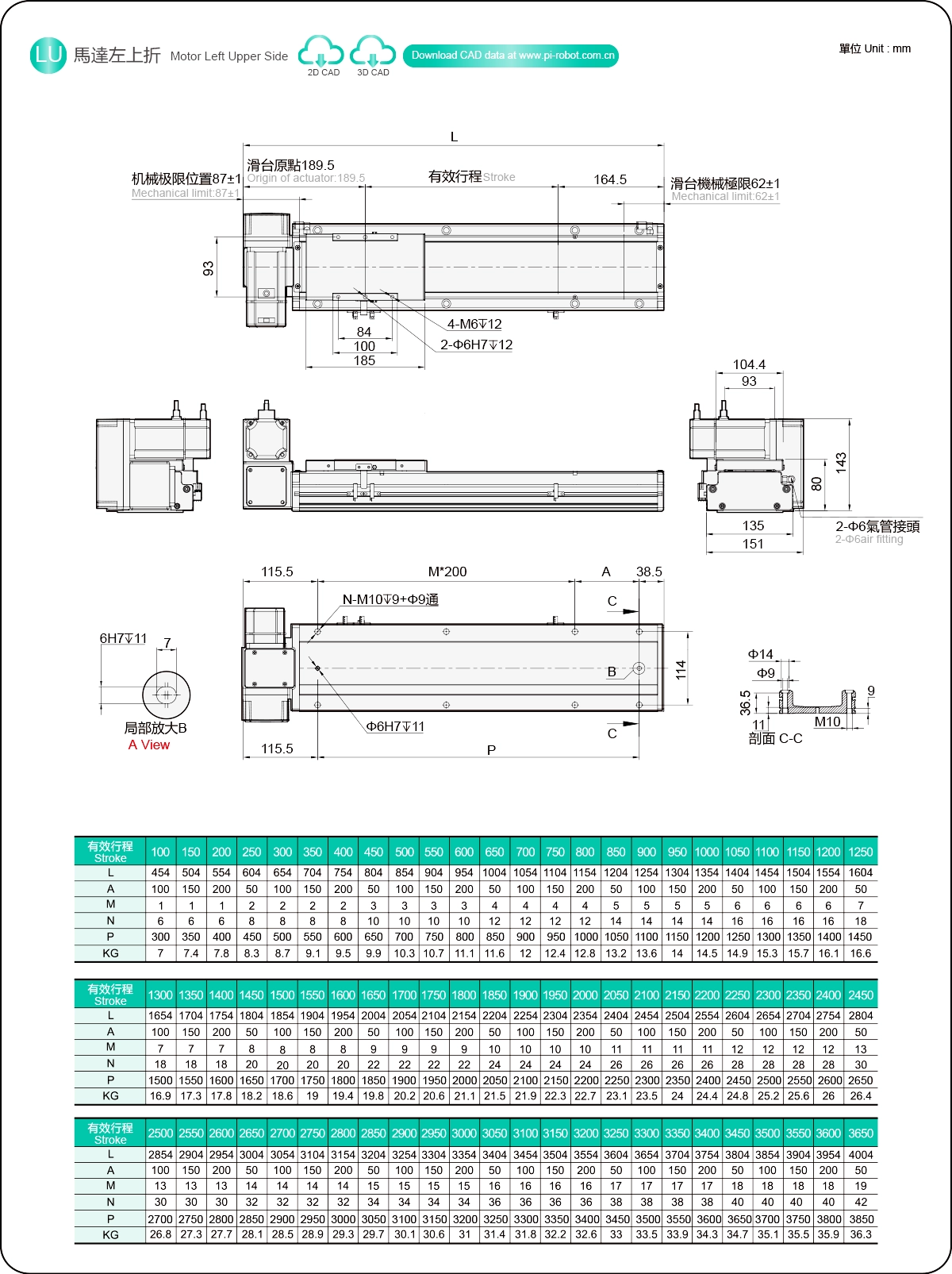 | 高刚性直线导轨(毫米) | 滚珠丝杠执行器 | ||