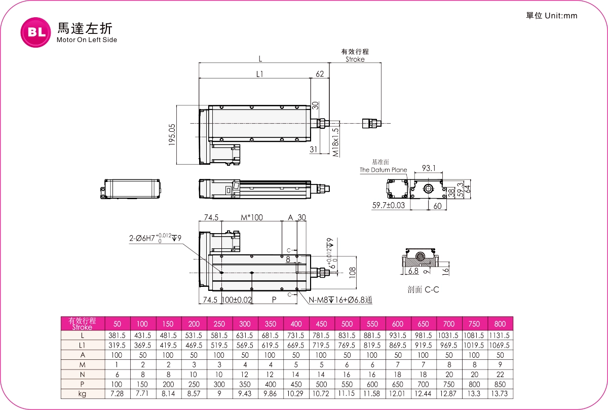 | 部分 | 滚珠丝杠直径(毫米) | C7Ø16 | |||