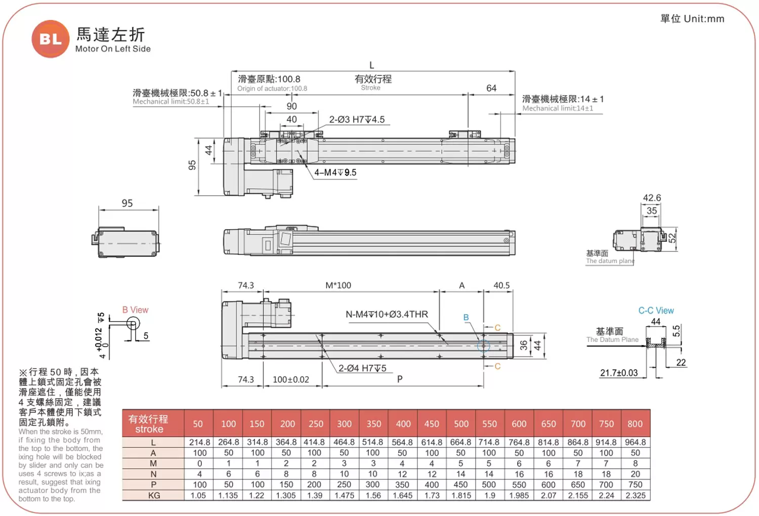 | 桨距(毫米) | 50-800毫米/50毫米间距 | ||||