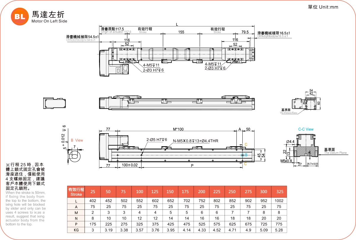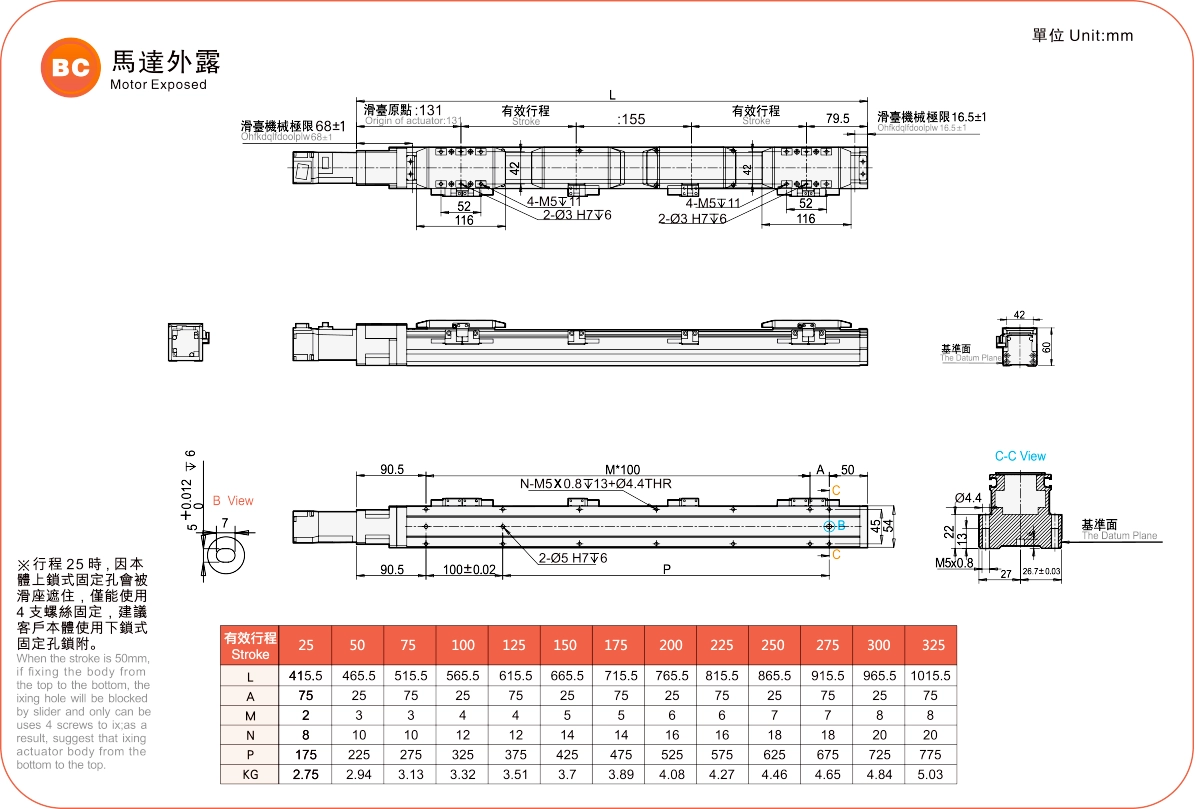 | 杆头节距(毫米)※2 | 25-325毫米/25节距 | ||||
