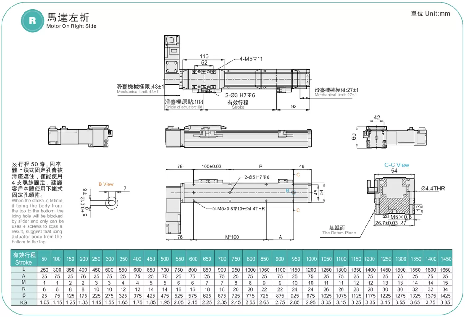 | 规格 | 重复性(毫米) | ±0.04 | |
