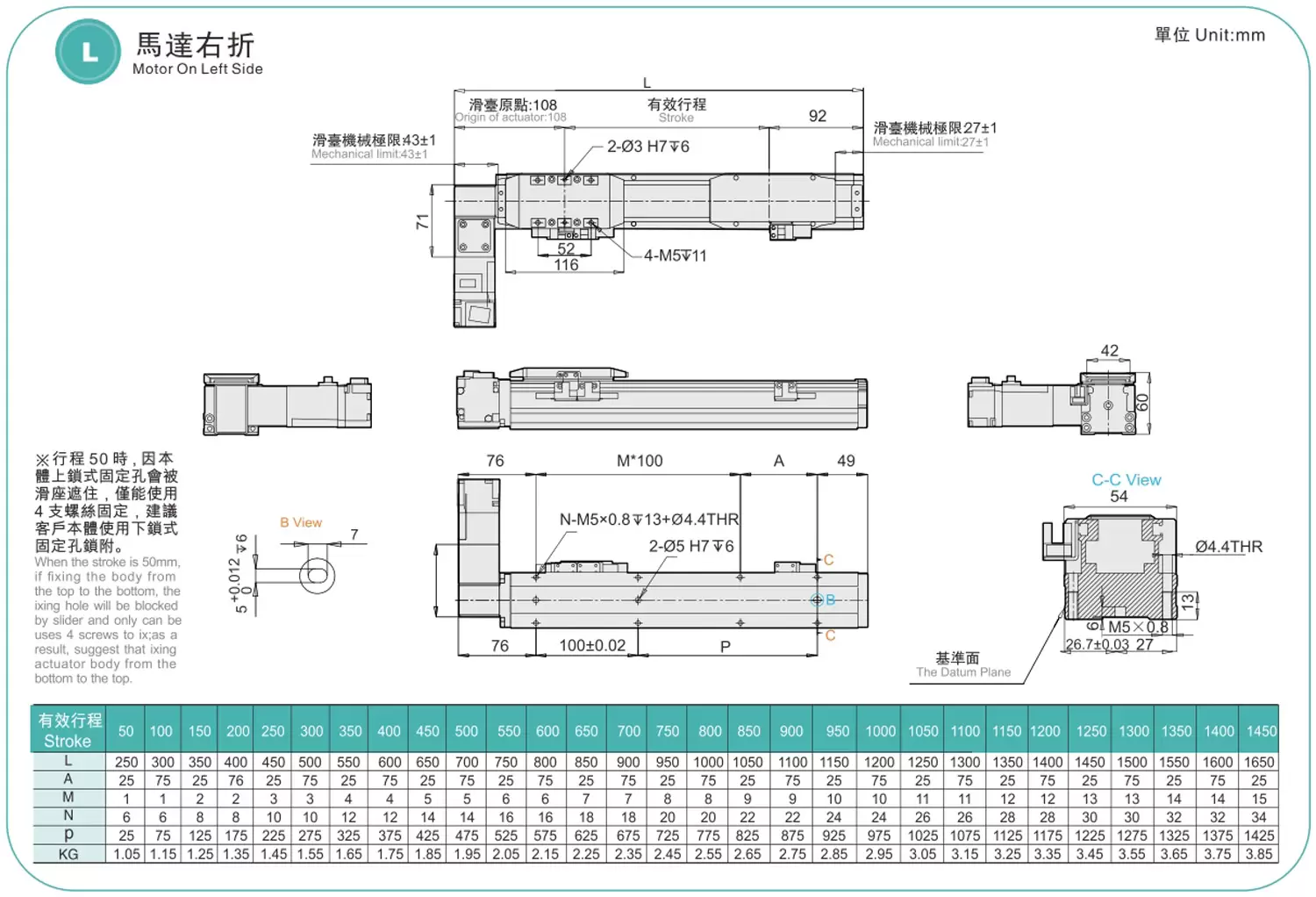 | 桨距(毫米) | 50-1450毫米/50毫米间距 | ||
