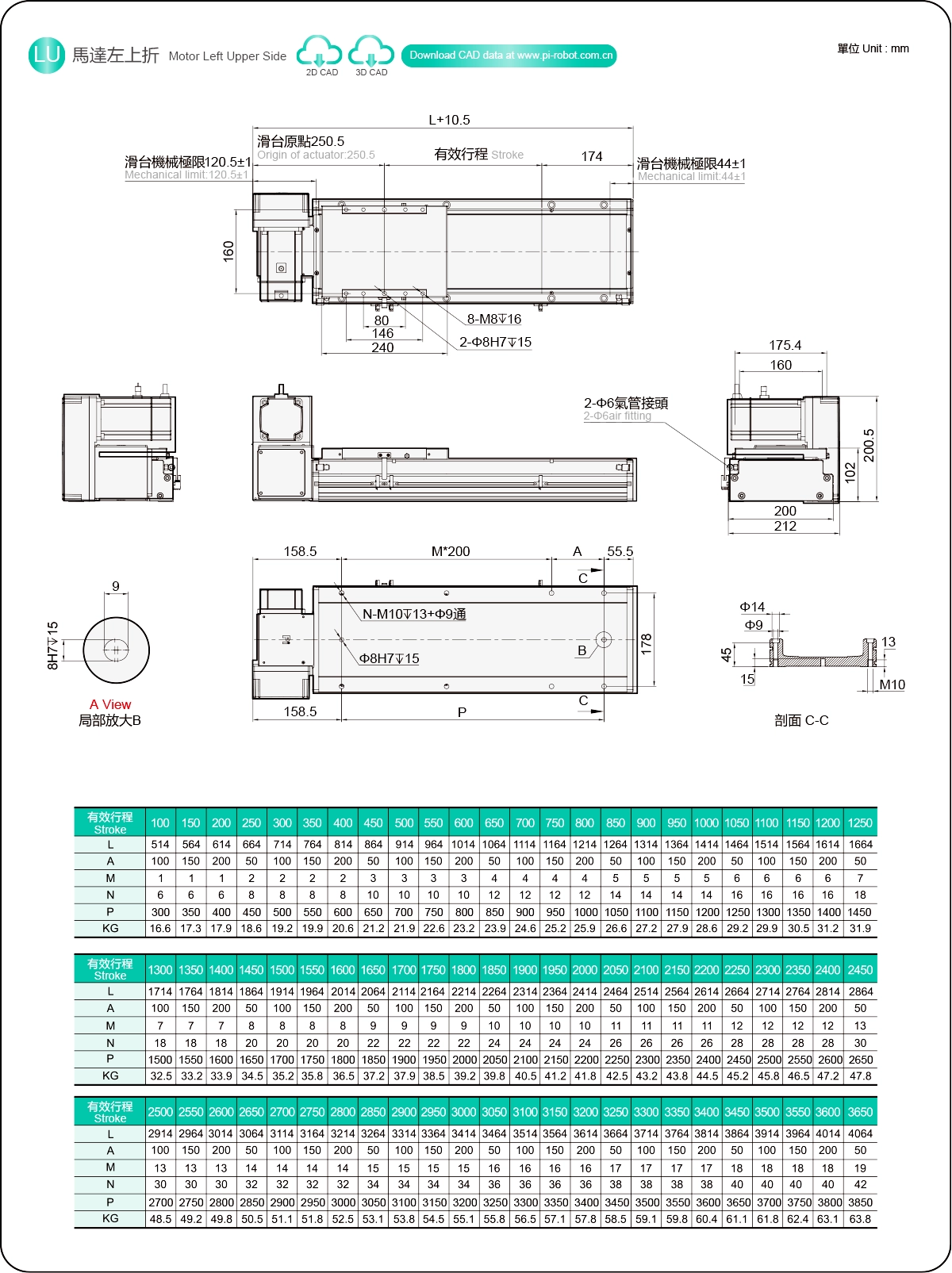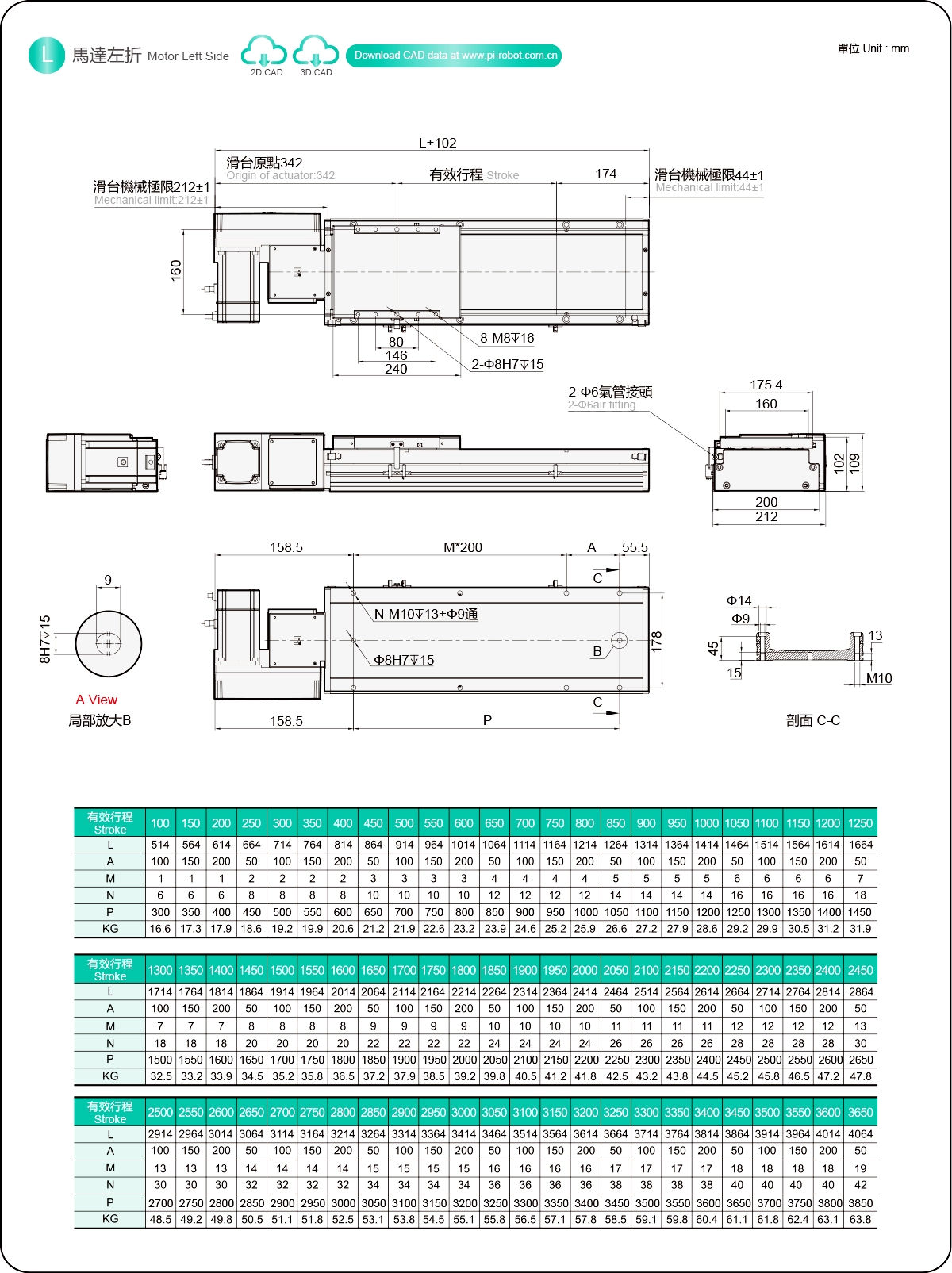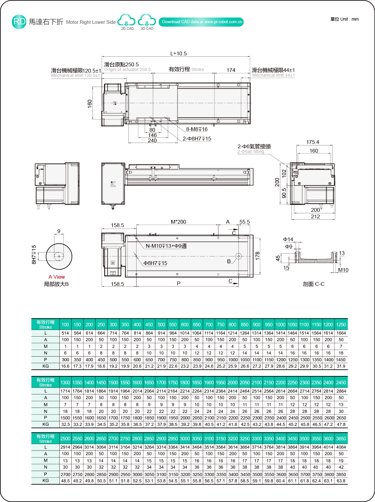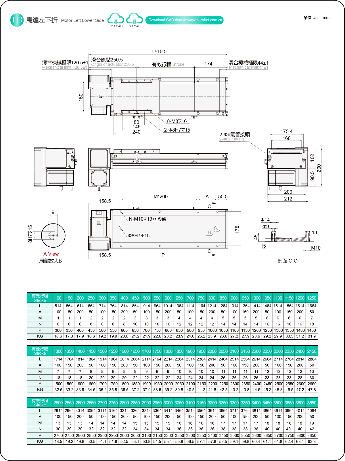 | 高刚性直线导轨(毫米) | 滚珠丝杠执行器 | ||