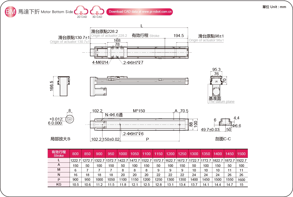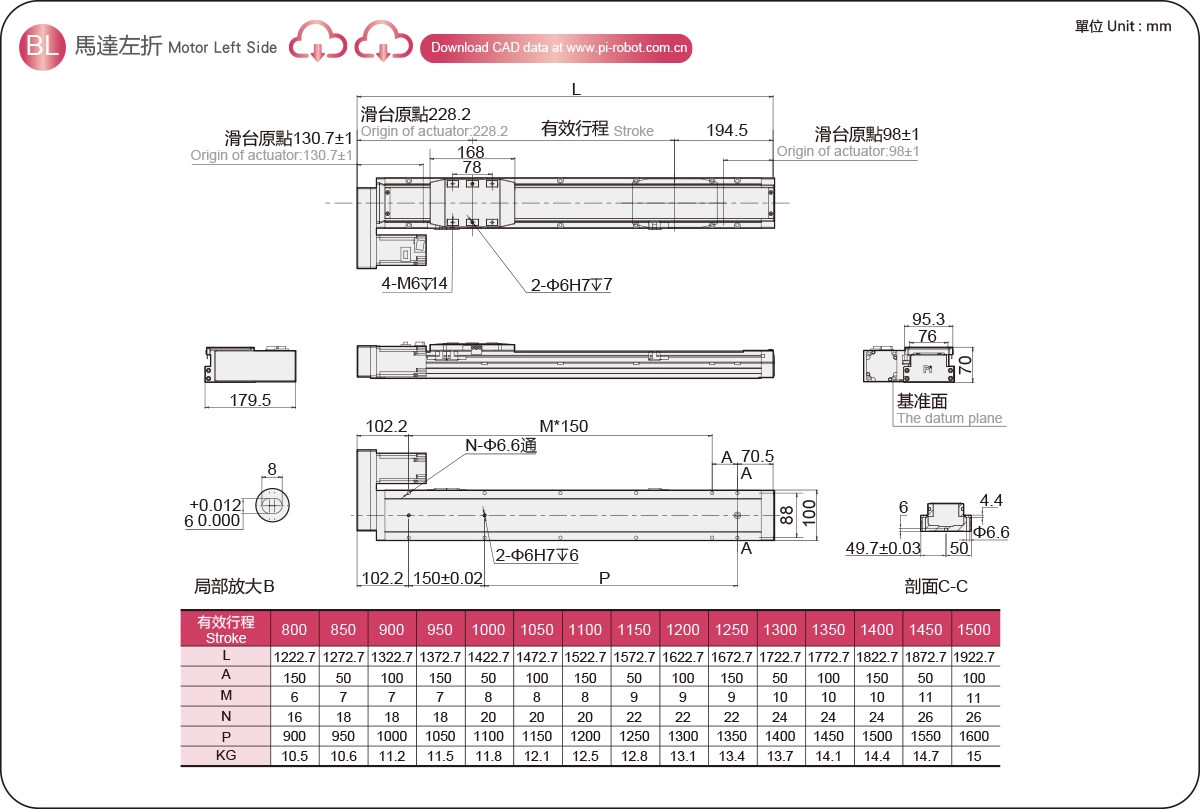 行程范围:800-1500毫米