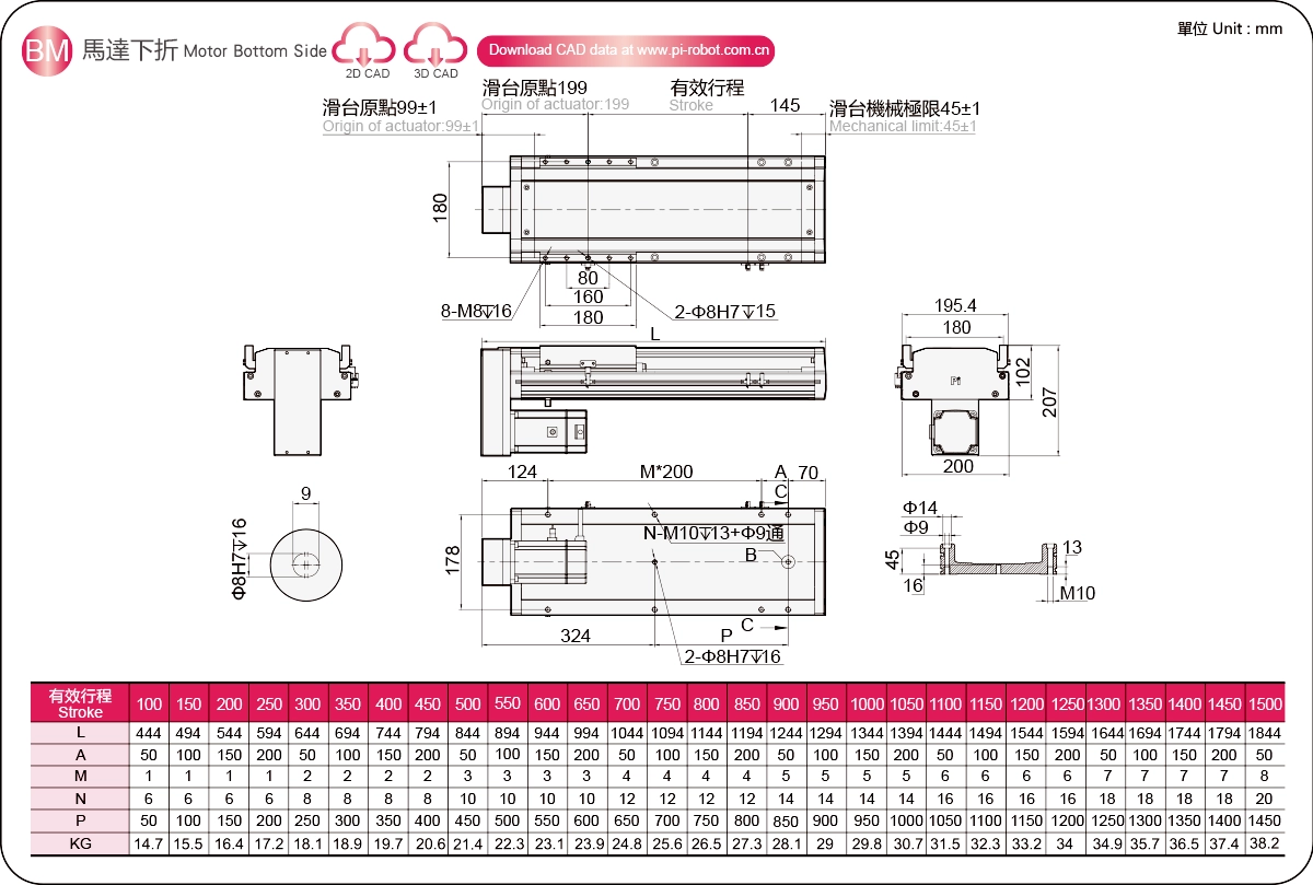| 高刚性直线导轨(毫米) | 滚珠丝杠执行器 | |||||