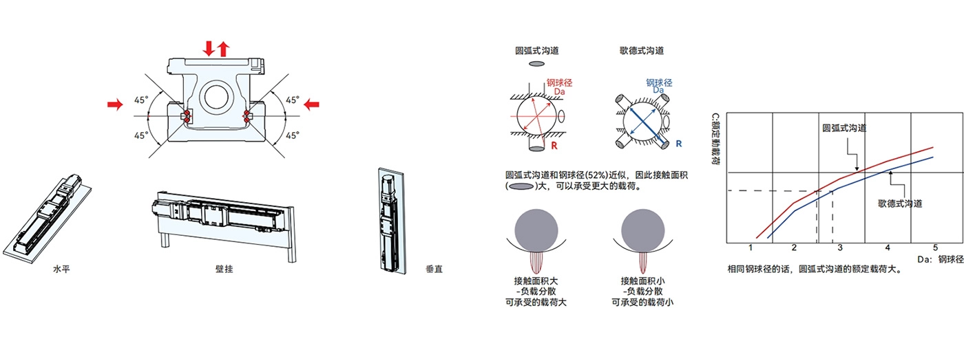 高刚性、高精度、低摩擦、高速运动承载能力强、使用寿命长等优点。