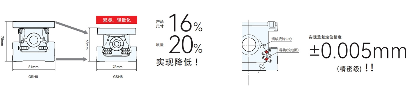 无间隙设计,可轻松顺畅地滑入“圆弧槽”,易于长时间保持高精度。