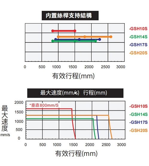 ※2 当行程超过 600mm 时,滚珠丝杠会发生跳动。在这种情况下,建议降低工作速度。详情请参阅 P85。
