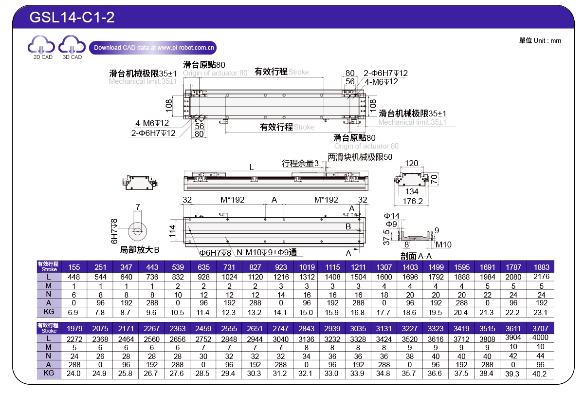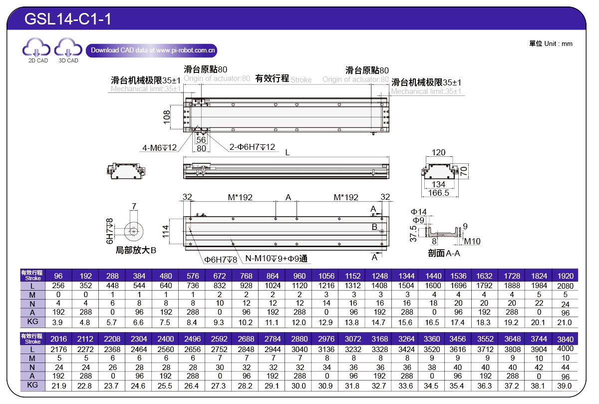 | 标准 | 线性电机机器人 | GSL7 | P27-C1 | 75 | 65 | ±0.003 | 26 | 57 | 3.3 | 6 | 2500 |