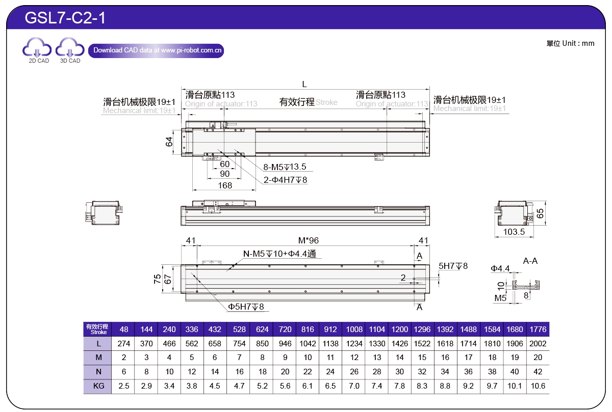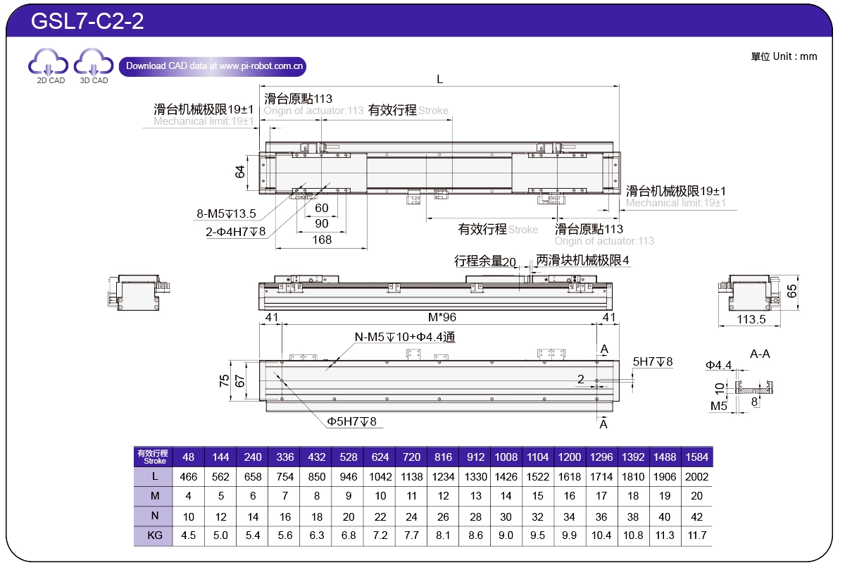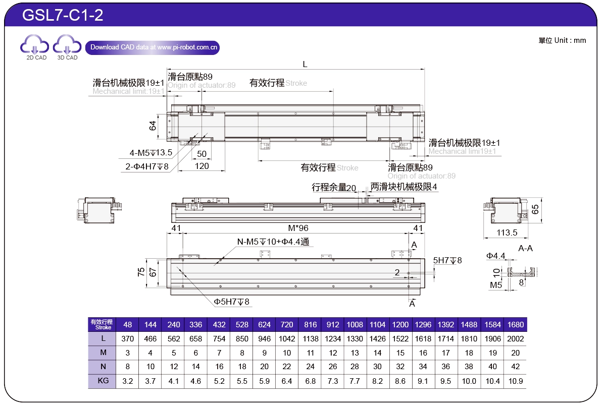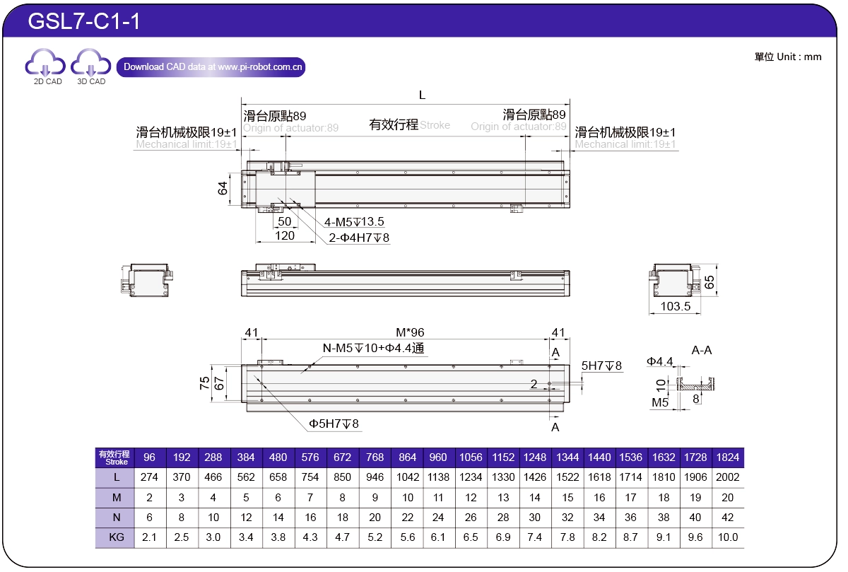 | 标准 | 线性电机机器人 | GSL7 | P27-C1 | 75 | 65 | ±0.003 | 26 | 57 | 3.3 | 6 | 2500 |