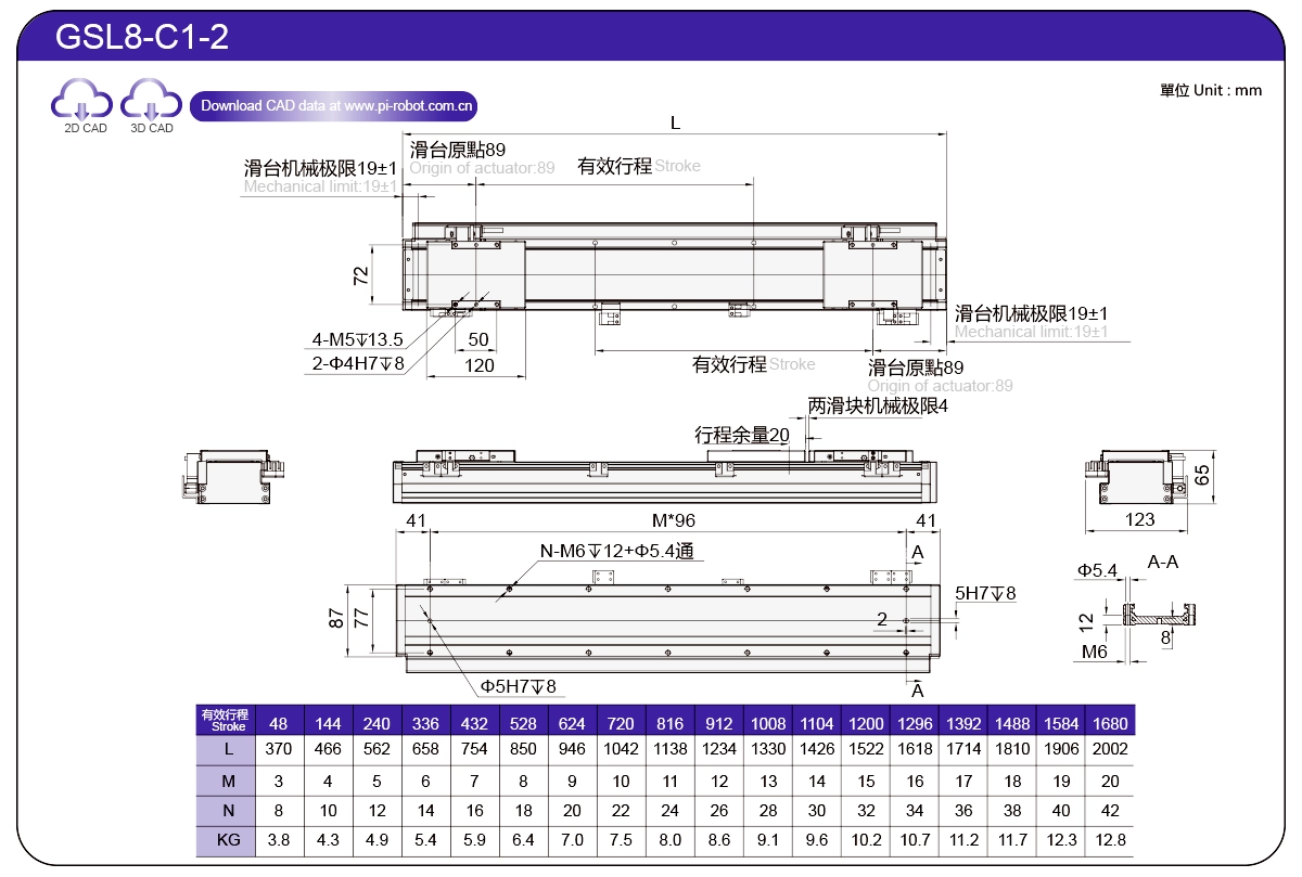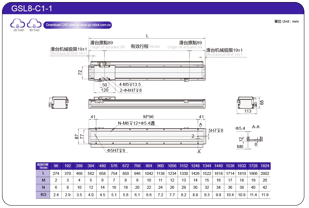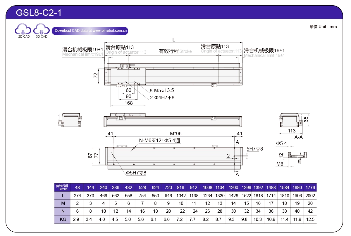 | 标准 | 线性电机机器人 | GSL7 | P27-C1 | 75 | 65 | ±0.003 | 26 | 57 | 3.3 | 6 | 2500 |