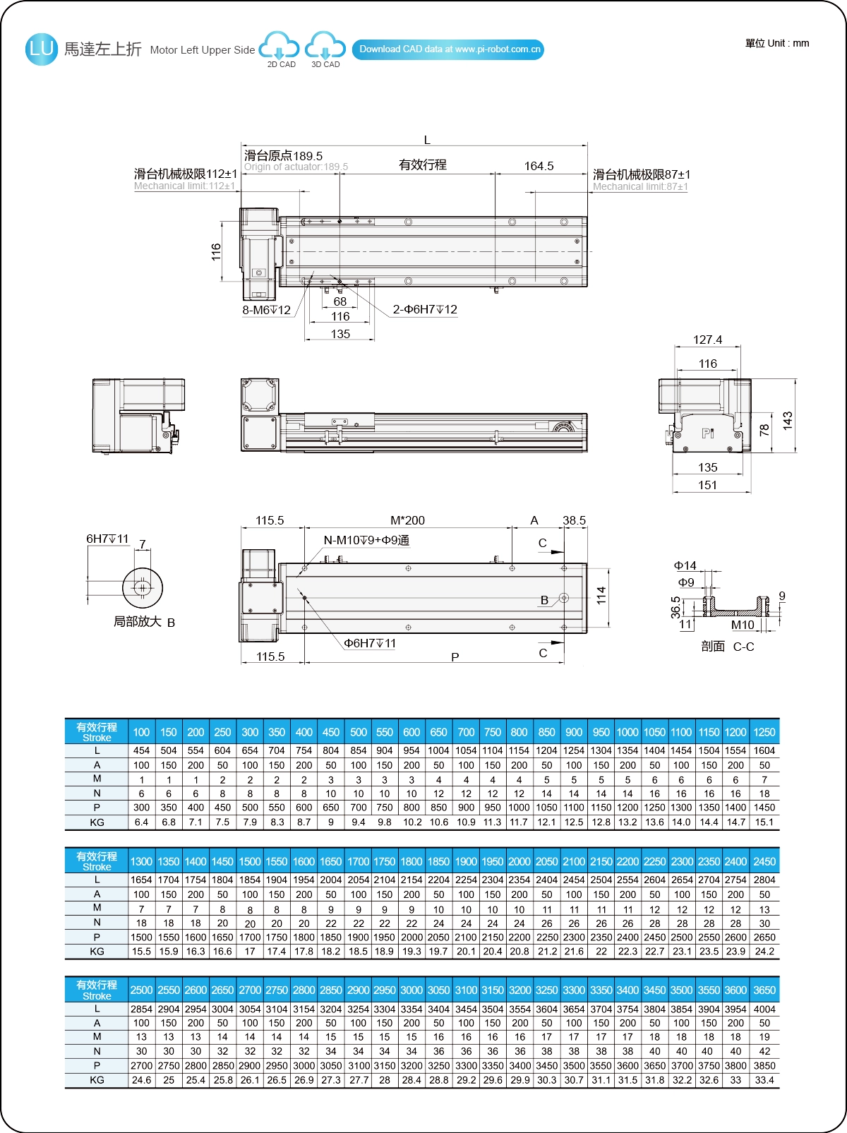 高刚性直线导轨(毫米)滚珠丝杠执行器