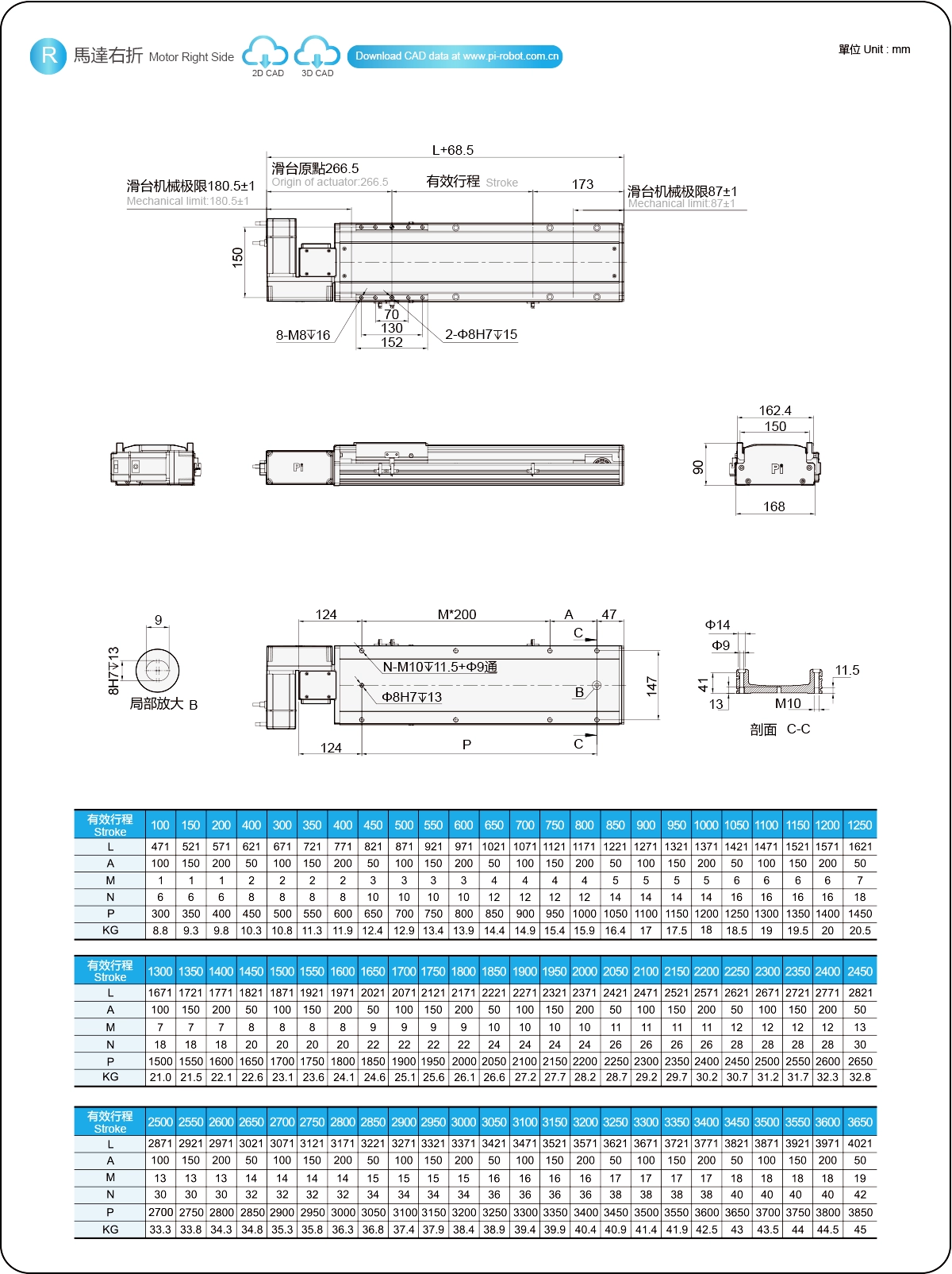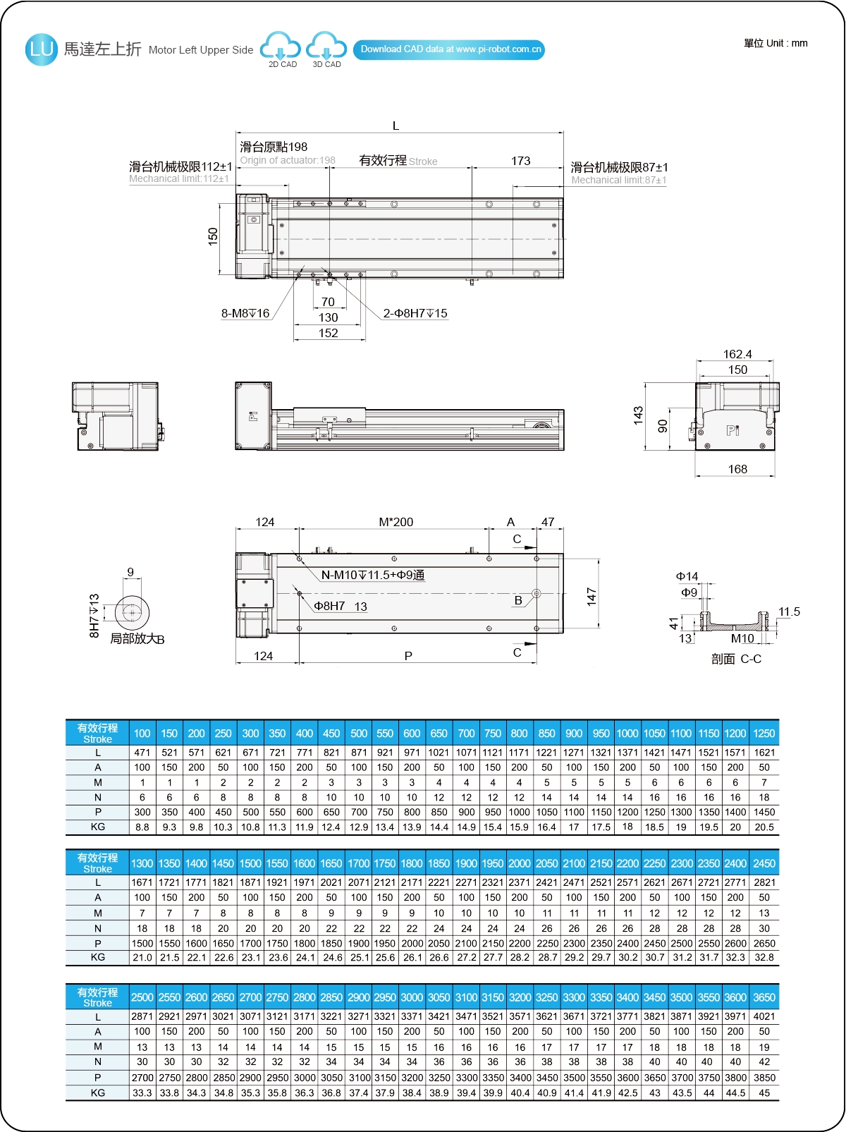 采用钢带防护,可防止异物直接落入滑台,并减少粉尘产生。适用于洁净室环境,并可配备不同厂家生产的电机和采用不同安装方式。
