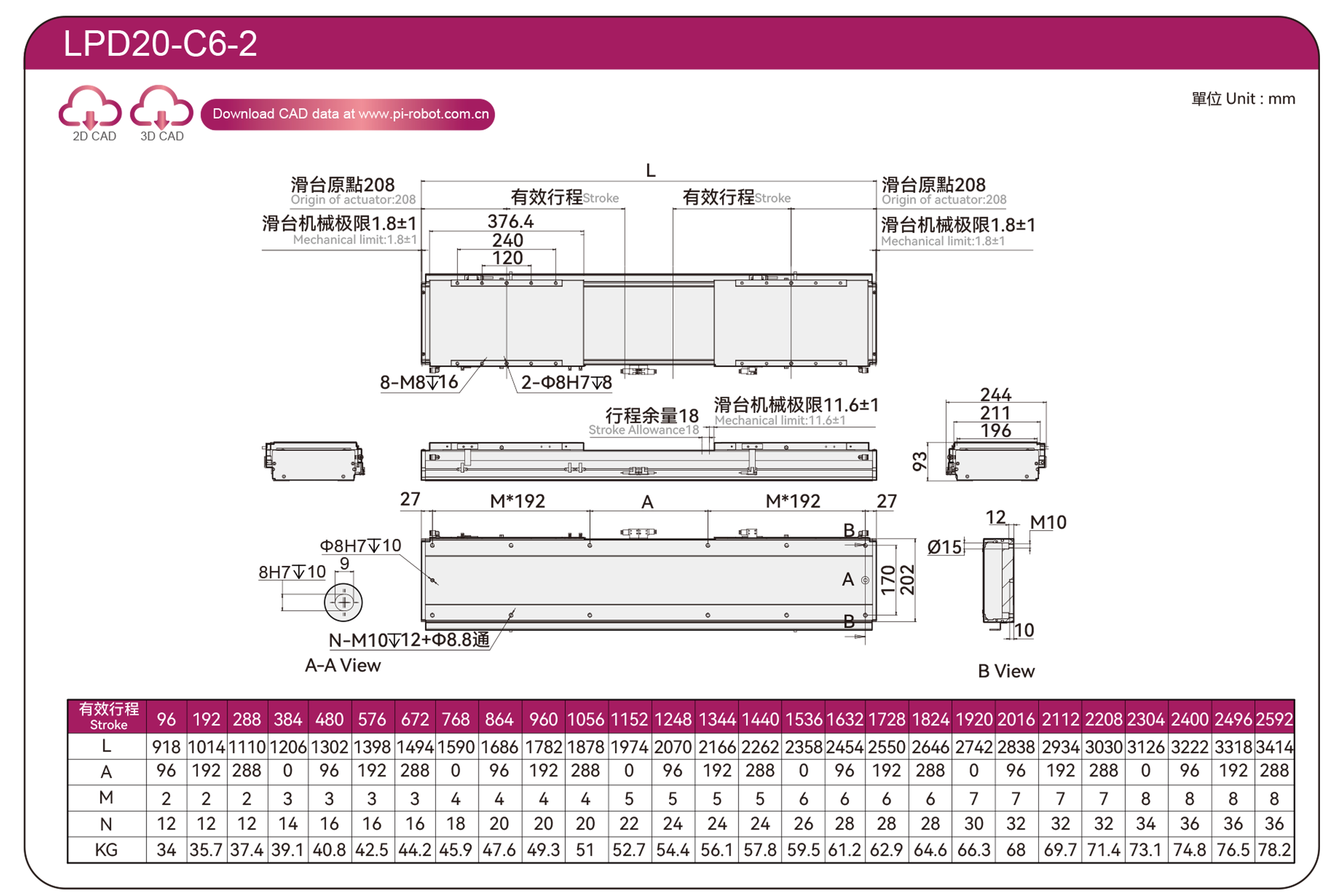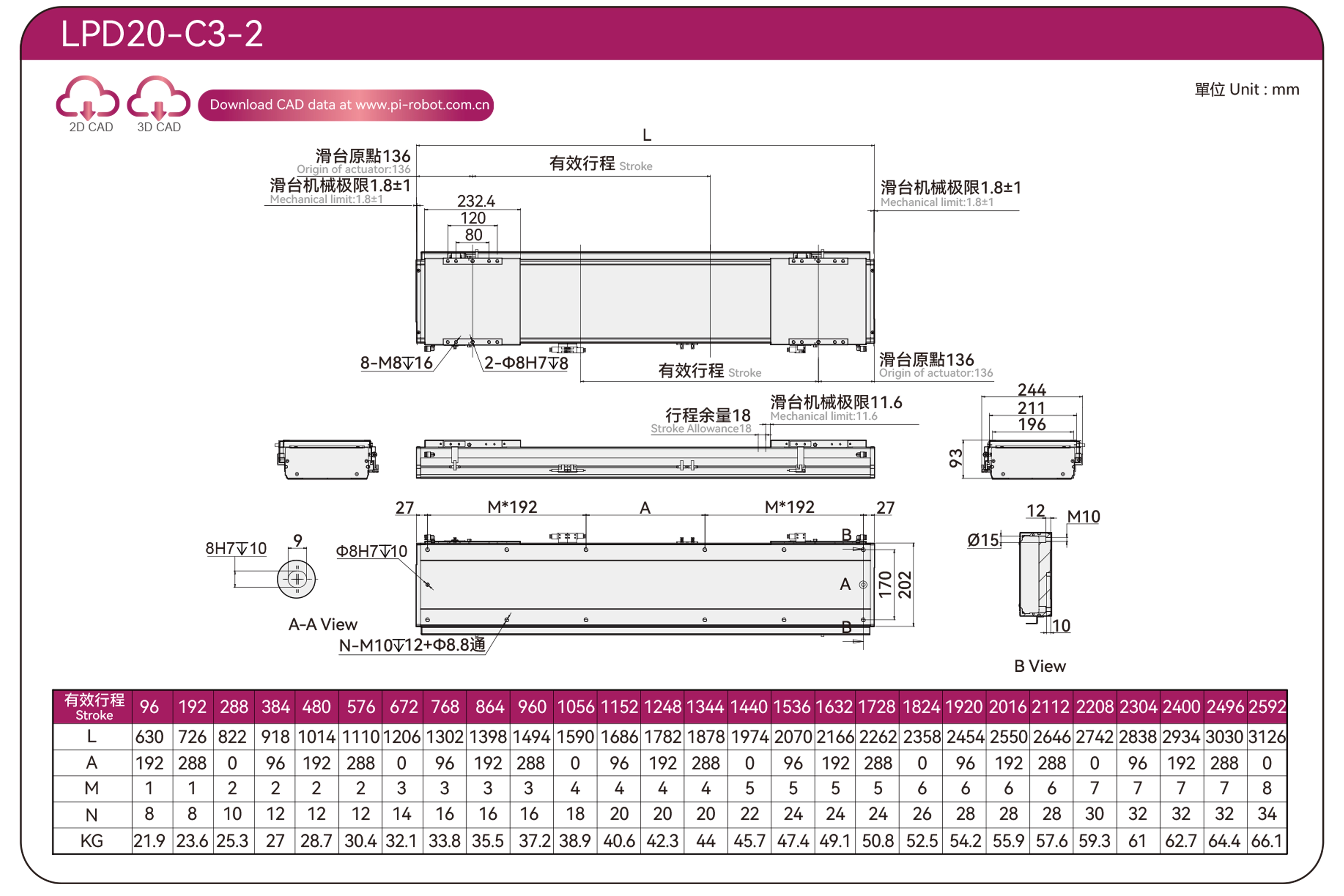 | LPD20 | P88-C3-S | 200 | 93 | ±0.003 | 408 | 897 | 3.3 | 60 | |||