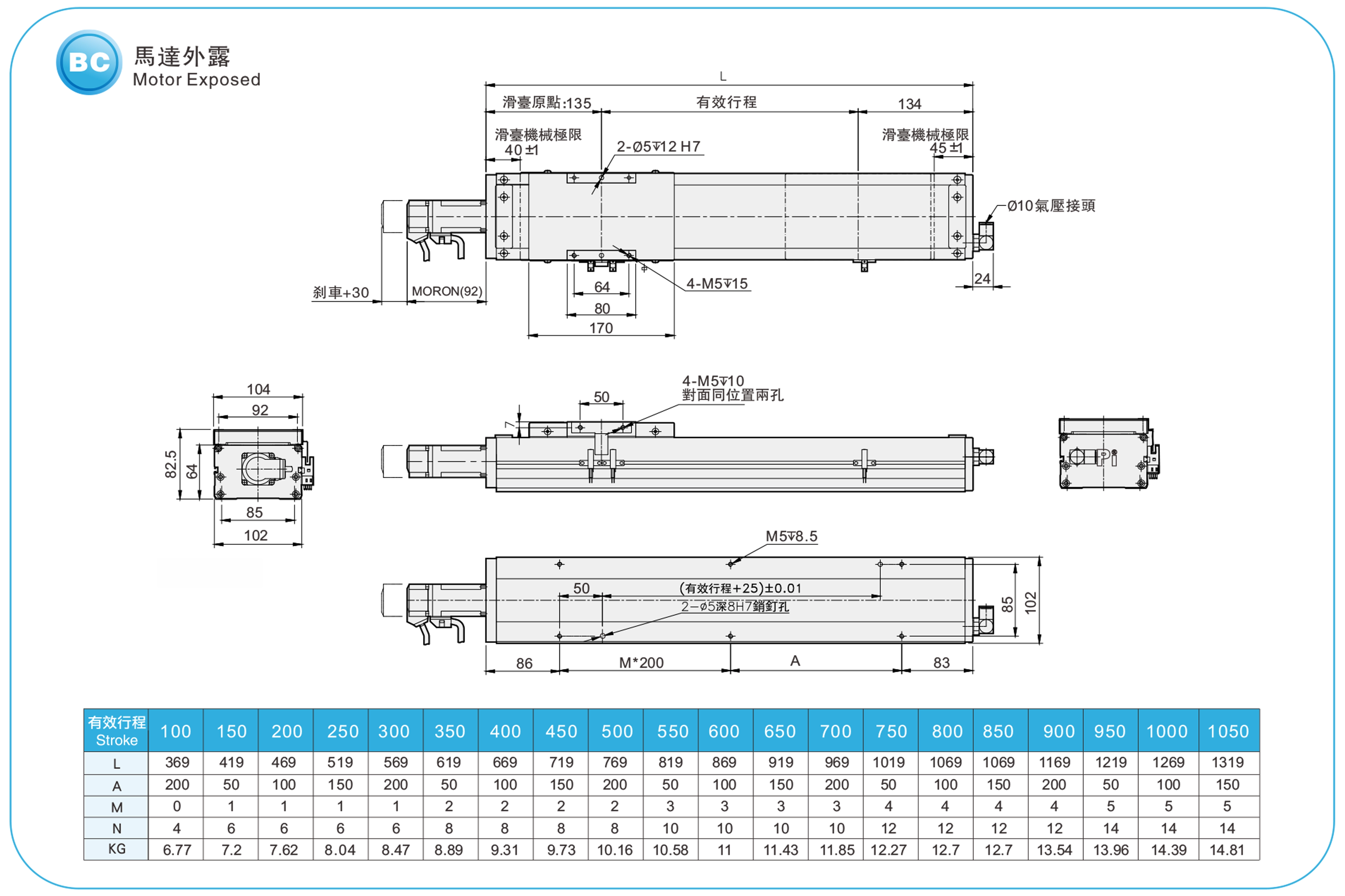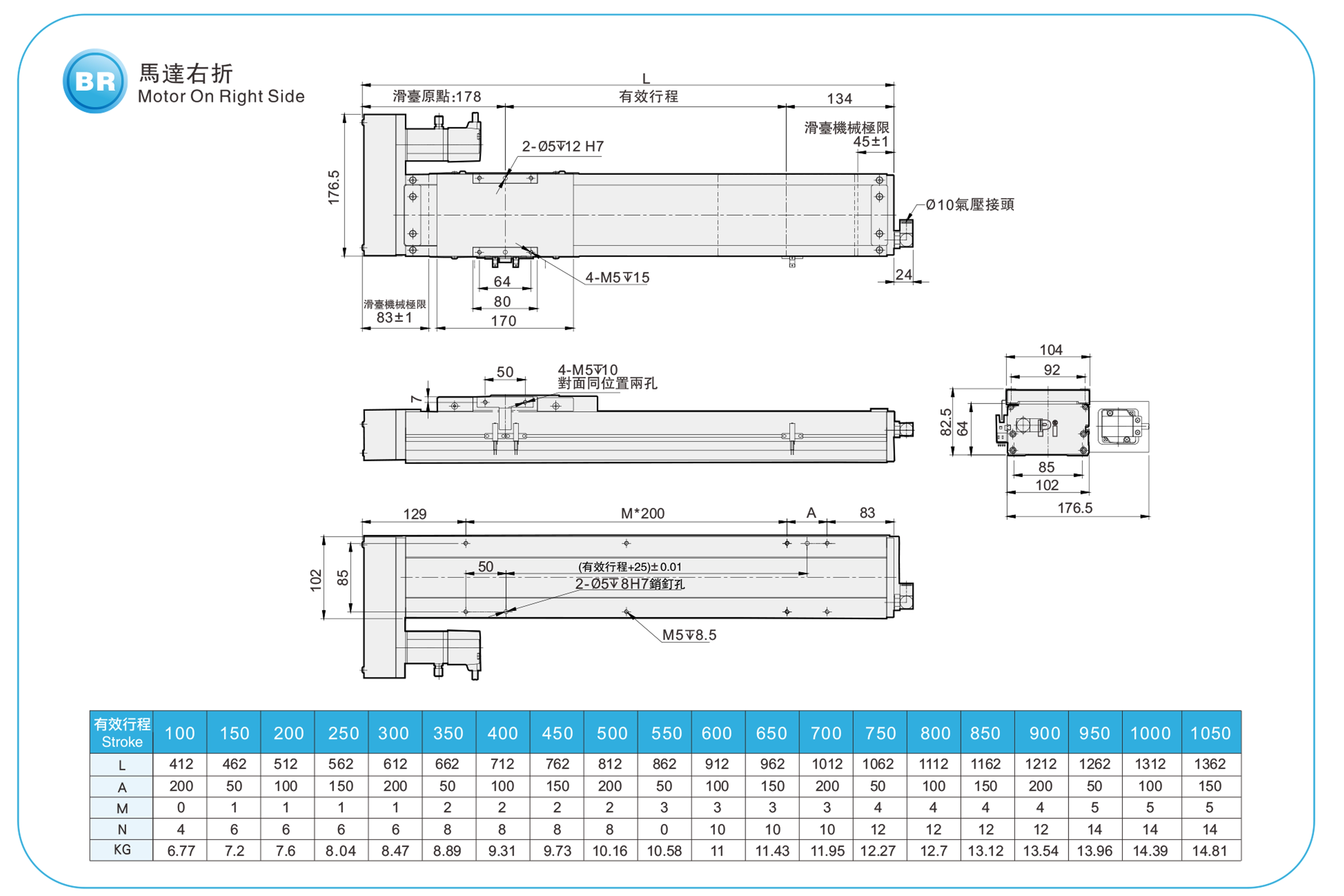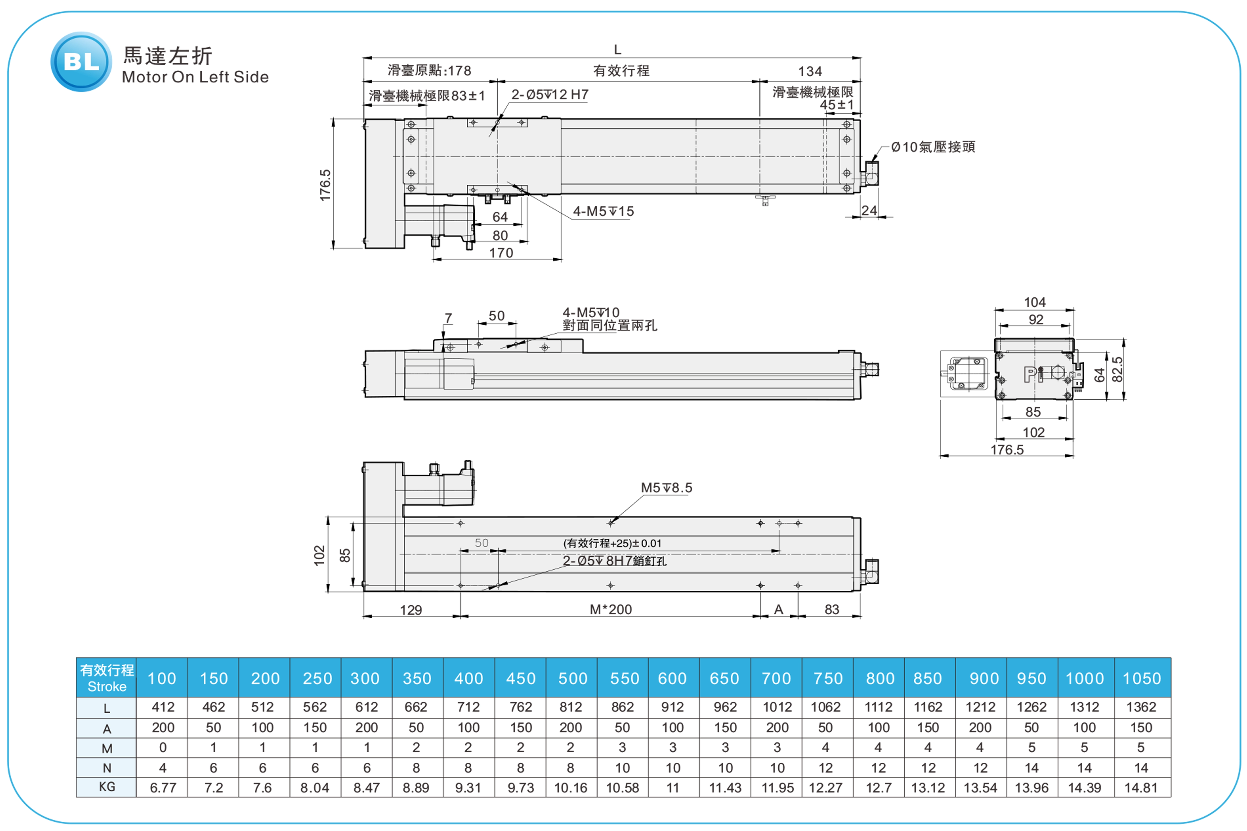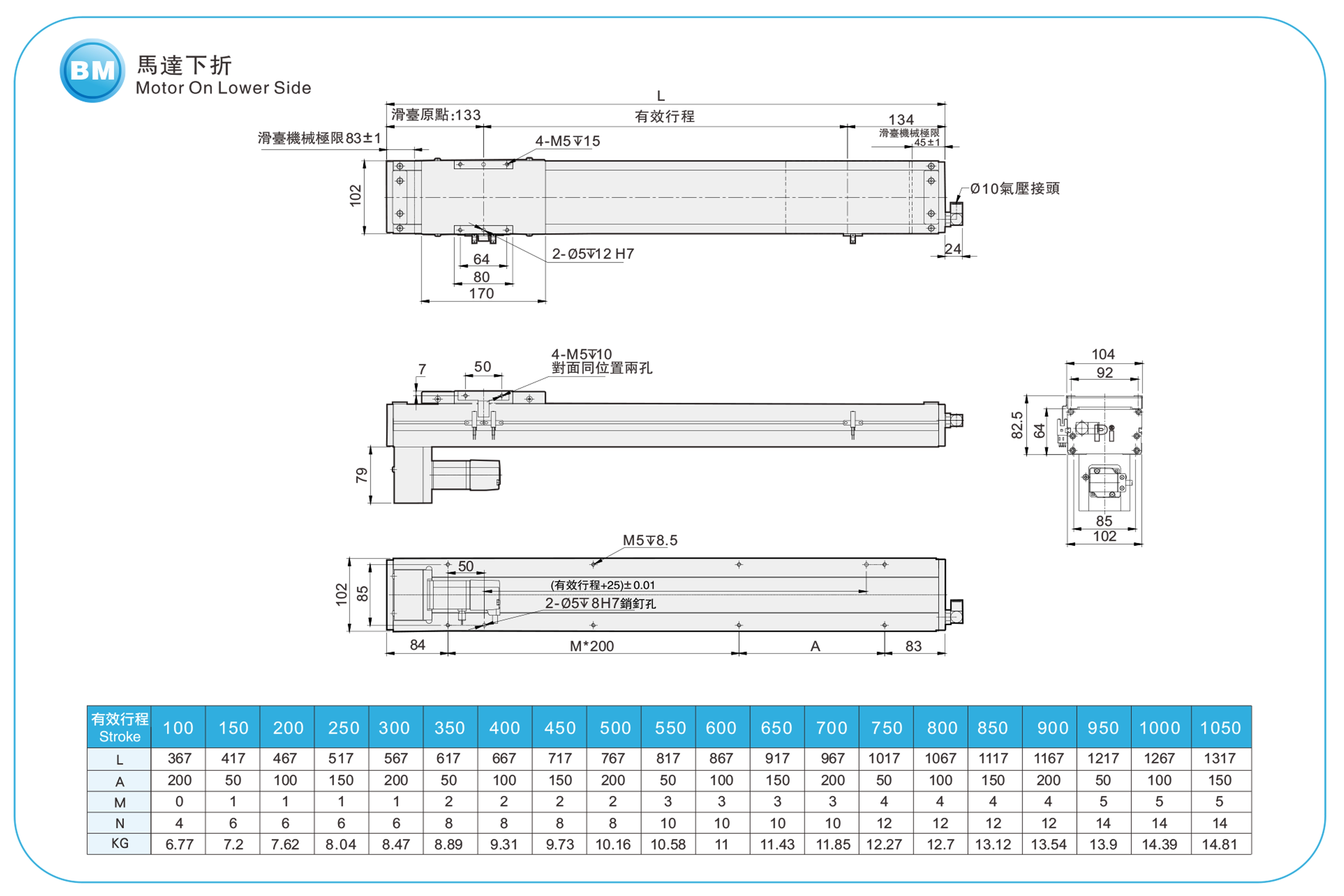 冲程螺距:100-1050毫米