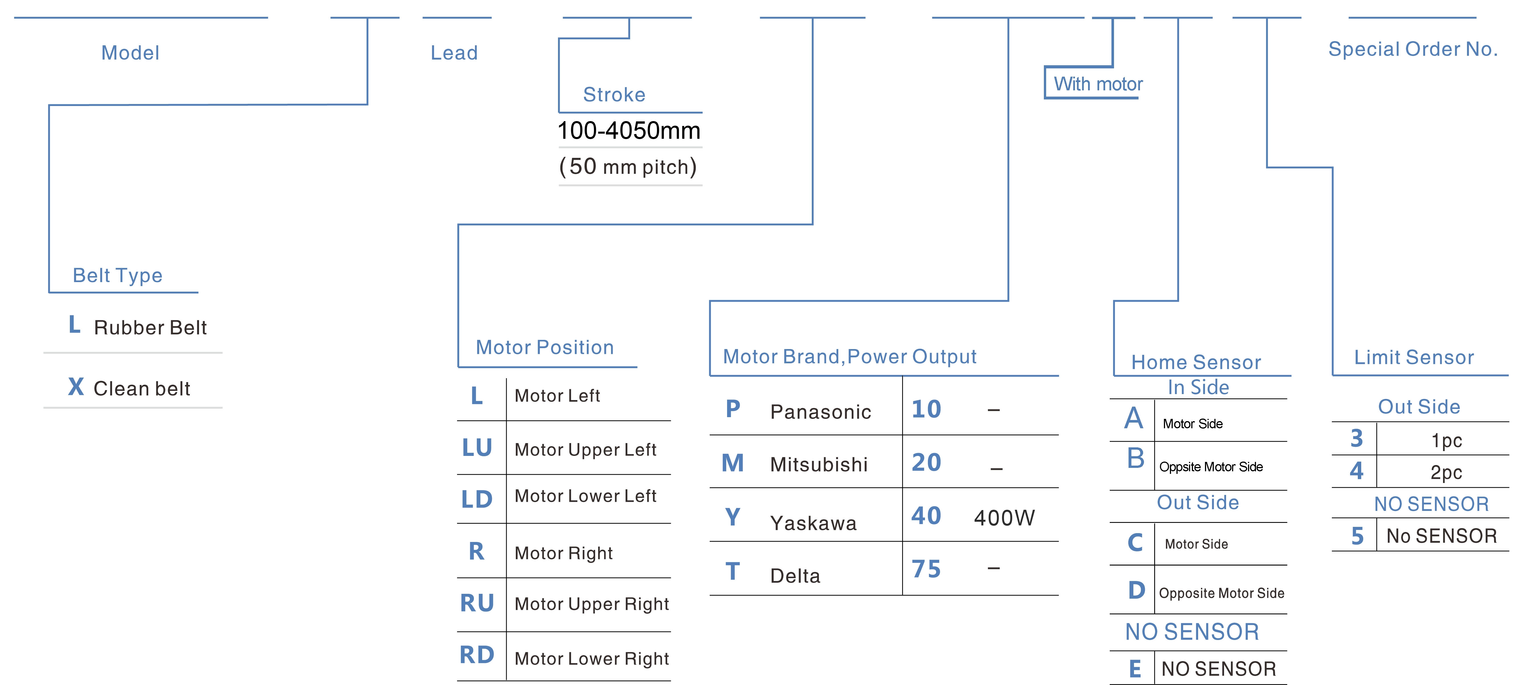 | 桨距(毫米) | 100-4050mm/50mm 间距 | ||