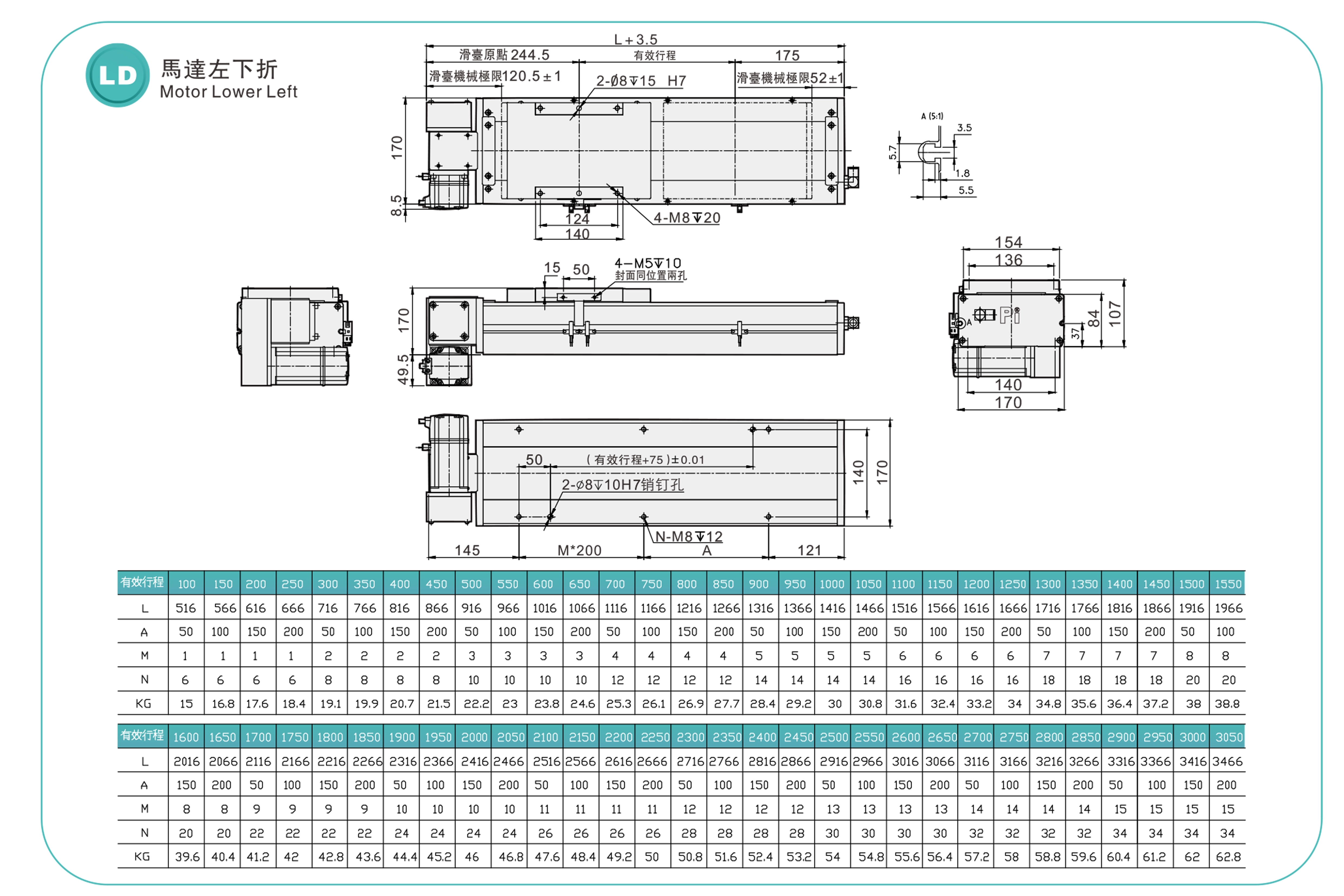 | 高刚性直线导轨(毫米) | 宽20厘米,高15厘米 | ||