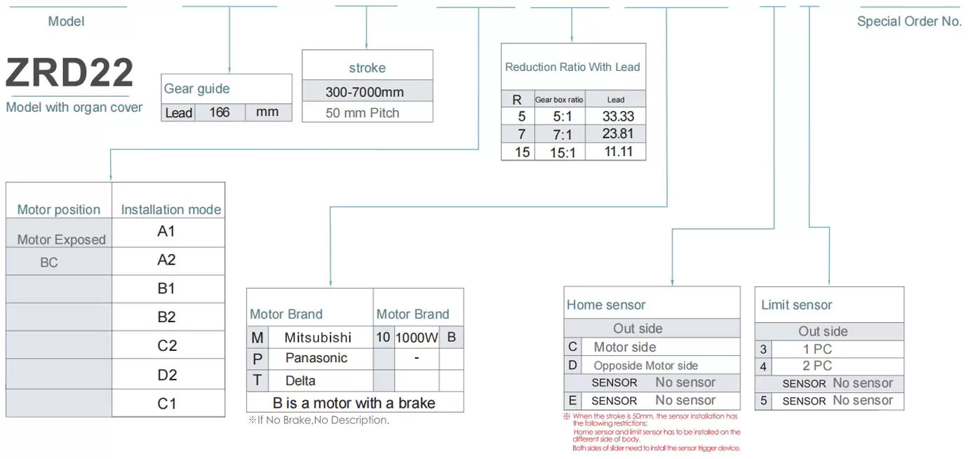 采用钢带防护,可防止异物直接落入滑台。滑台最大行程可达1500mm。多向电机安装位置可选,使机器设计更加灵活。可与多种品牌的伺服电机配套使用。
